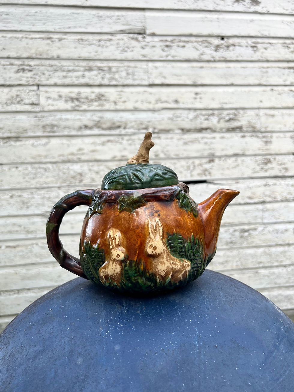 Vintage Art Nouveau Majolica Teapot | Woodland Scenery